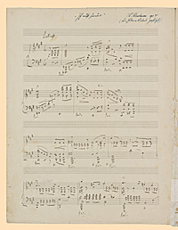 Anmerkung: Übertragung des Liedes »Ich muß hinaus« op. 4, Nr. 1 für Klavier zu zwei Händen. Beiliegend: Druck einer Einzelausgabe des Liedes (Breitkopf & Härtel) und eine Übertragung des Liedes »Täuschung« op. 4, Nr. 3 von fremder Hand, 1 Doppelbl., 2 S.