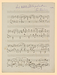 Anmerkung: Reinschrift eines Klavierstücks 4/4 Es-Dur für Mathilde Schlüter, 3 S., beiliegend eine Abschrift des Stückes von der Hand Mathilde Schlüers, 2 S. Weitere Beilagen: ein Klavierstück 3/4 F-Dur in der Hand Mathilde Schlüters, 1 S. und eines Klavierstücks 3/4 f-Moll, 1 S.