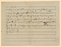 Beschreibung: Notation mit schwarzer Tinte auf 4, 5, 4, 5, 5, 4, 6, 3, 6, 10, 6, 4, 3, 5, 7, 5 Systemen, Eintragungen mit Bleistift und blauem Buntstift