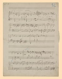 Anmerkung: S. 32-33 Skizzen, verso: Poco Allegro 4/4 G-Dur, S. 34-35 Entwürfe und Skizzen für ein Werk für ein solistisches Streichinstrument und Klavier, 4 S.