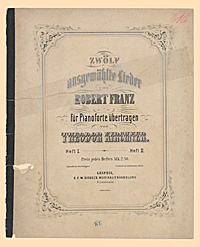 ZWÖLF / uasgewählte Lieder / von / ROBERT FRANZ / für das Pianoforte übertragen / von / THEODOR KIRCHNER.