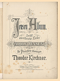 Jensen Album. / Zwölf / auserlesene Lieder / von / ADOLF JENSEN, / für Pianoforte übertragen / von / Theodor Kirchner.