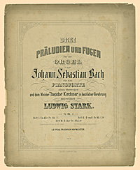 DREI / PRÄLUDIEN und FUGEN / für die / ORGEL / von / Johann Sebastian Bach / für das / PIANOFORTE / allein übertragen / und dem Meister Theodor Kirchner in herzlicher Verehrung / zugeeignet / von / LUDWIG STARK.