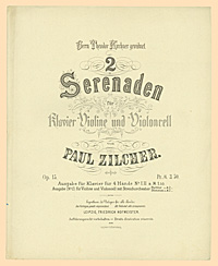 Herrn Theodor Kirchner gewidmet / 2 / Serenaden / für / Klavier Violine und Violoncell / von / PAUL ZILCHER. / Op. 15. [links]