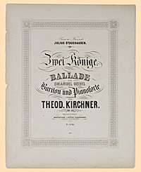 Seinem Freunde / JULIUS STOCKHAUSEN. / Zwei Könige. BALLADE / von / EMANUEL GEIBEL / für / Bariton und Pianoforte / componirt / von / THEOD. KIRCHNER. / OP. 10.
