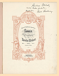 Widmungstext: Herrn J. C. Eschmann gewidmet. [gedruckte Widmung] Helene Bülau, meiner treuen Freundin. August 1900 Theodor Kirchner. [in Kirchners Handschrift]