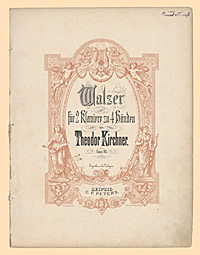 Anmerkung: Pappeinband mit handschriftlichem Titel: "Walzer von Theodor Kirchner I" in shcwarzer Tinte von der Hand Mathilde Schlüters, Besitzstempel auf dem Pappeinband und dem Titelblatt: Conrad Hannss