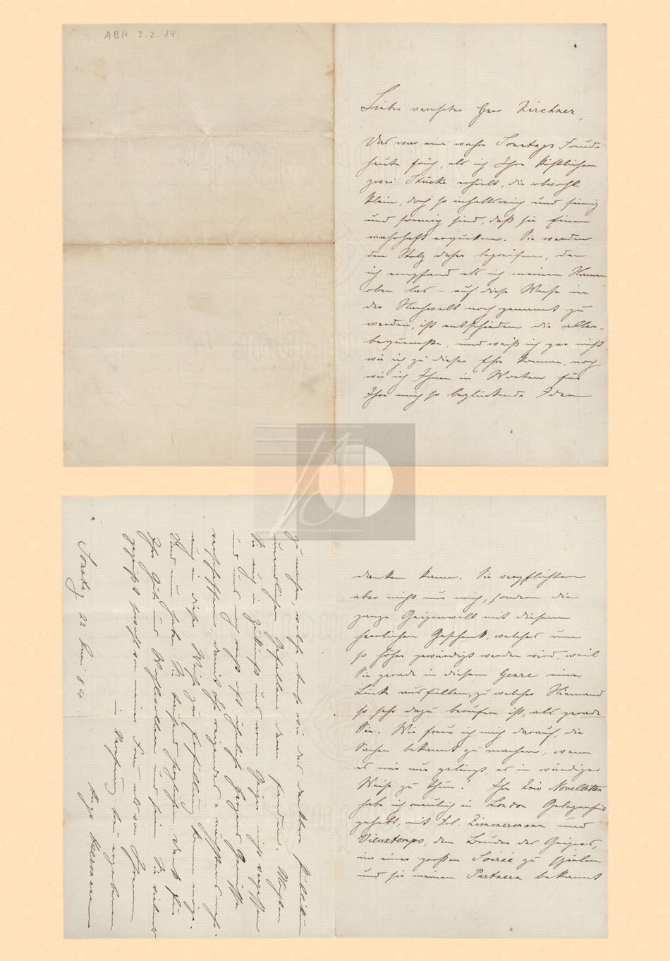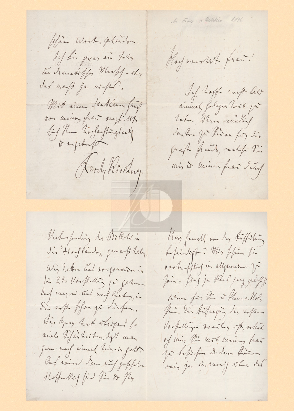 Brief Theodor Kirchner an [Frau von Holstein] Brief, [Dresden, um 1876], 4 S.