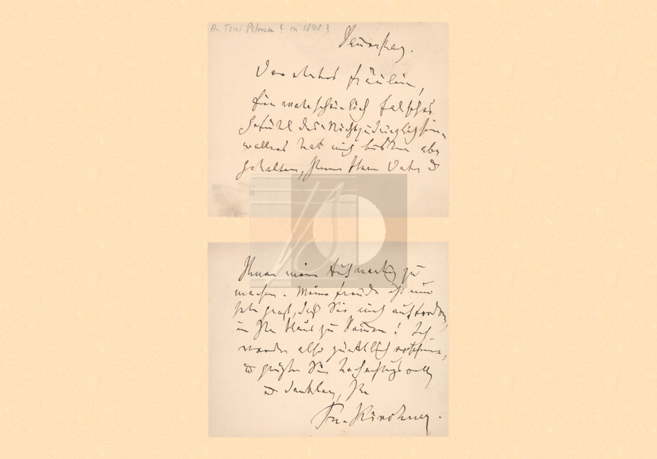 Brief Theodor Kirchner an Fräulein [Toni Petersen?] Briefkarte, [Hamburg, ca. 1891]