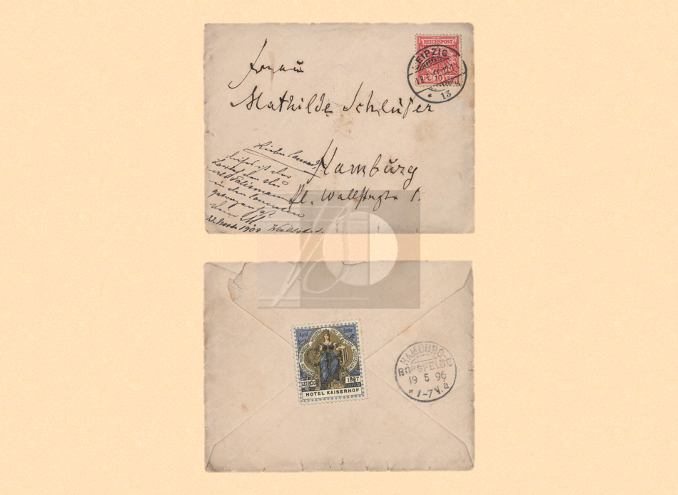 Brief Theodor Kirchner an Mathilde Schlüter Briefumschlag, [Leipzig, 18. Mai 1896]