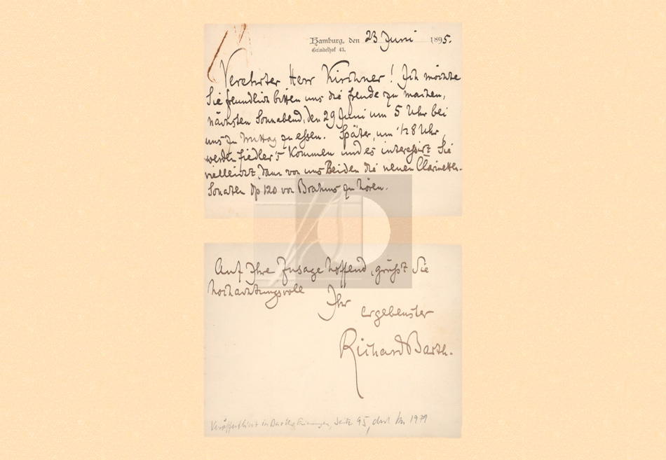 Brief Richard Barth an Theodor Kirchner Briefkarte, [Hamburg,] 23. Juni 1895