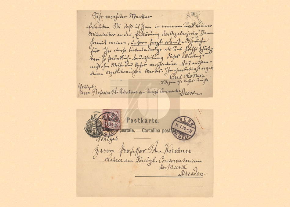Brief Carl Domer an Theodor Kirchner Postkarte, [Bern, 14. Januar 1888]