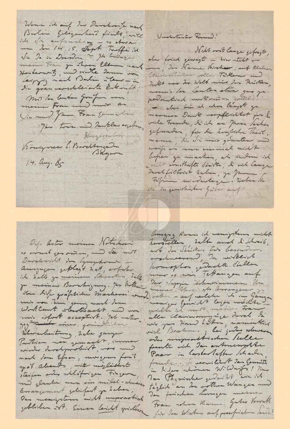 Brief Heinrich von Herzogenberg an Theodor Kirchner Brief, Königssee b. Berchtesgaden Bayern, 14. August 1885, 4 S.