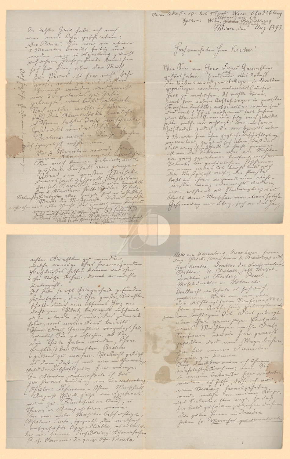 Brief Heinrich Schulz-Benthen an Theodor Kirchner Brief, Wien, August 1893, 4 S.