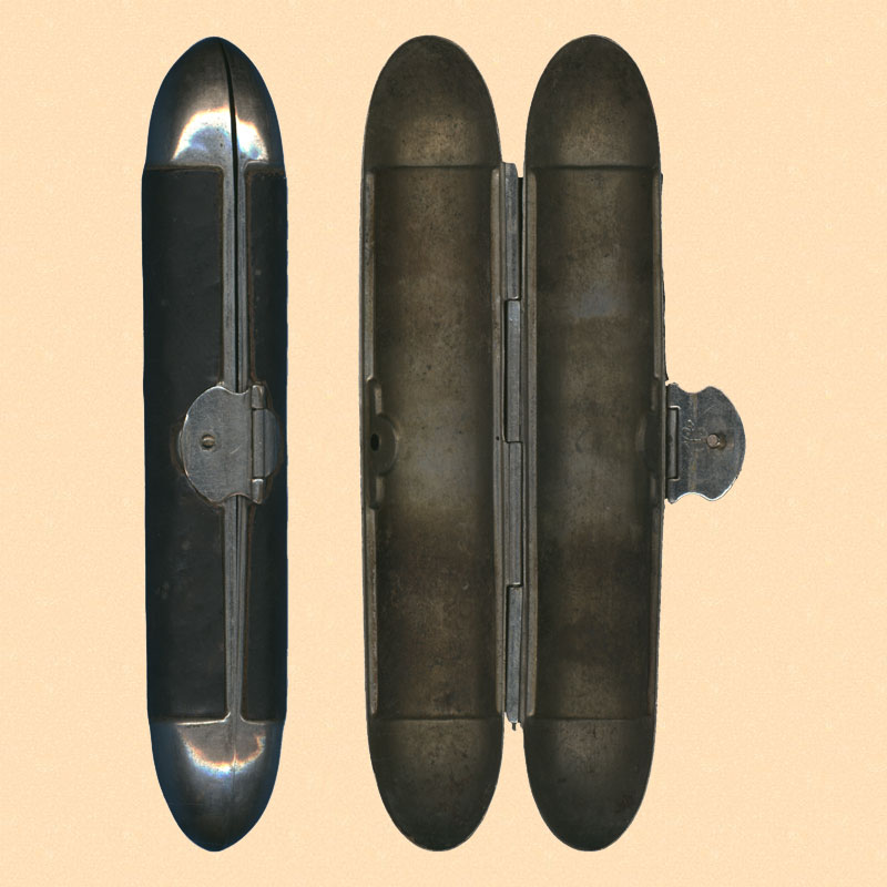 Lederschreibmappe mit Federhaltern, Radierbürsten, Halter mit Goldfeder
